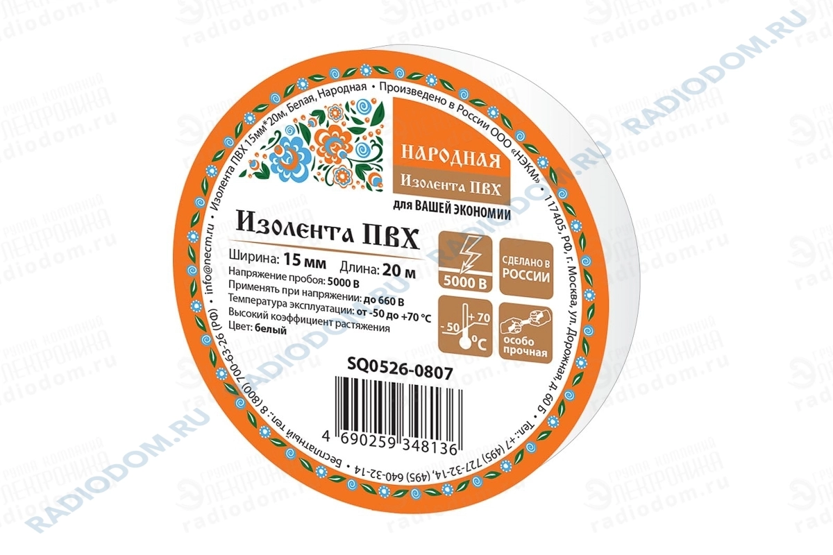 Изолента белая 0,13ммх15ммх20м TDM ELECTRIC SQ0526-0807