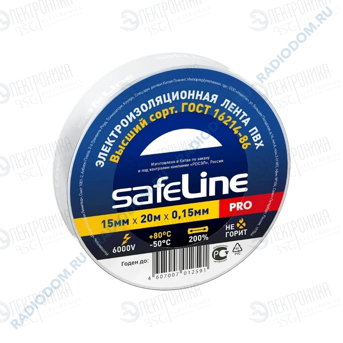 Изолента ПВХ 0,15ммх15ммх20м белая Multech 911 PRO SafeLine