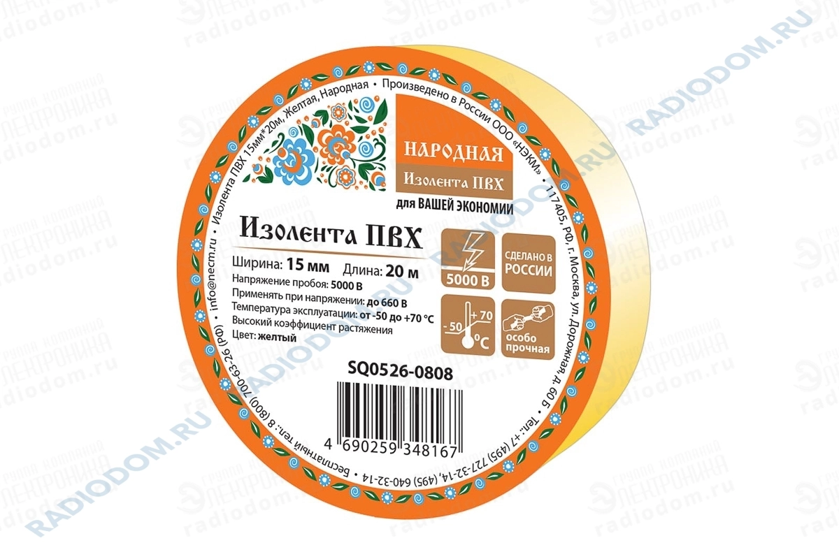 Изолента ПВХ 0,13ммх15ммх20м желтая TDM ELECTRIC