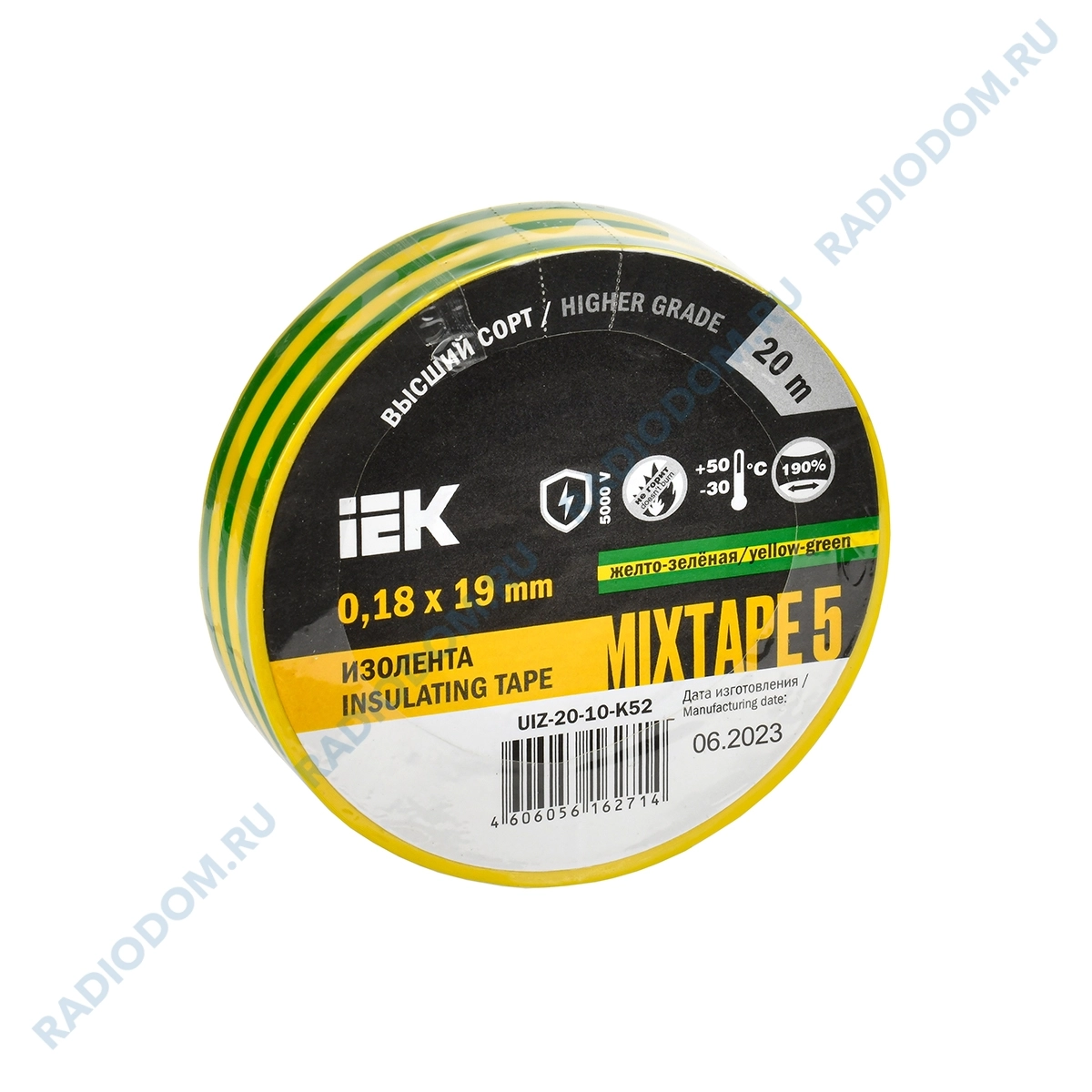 Изолента ПВХ 0,18ммх19ммх20м желто-зеленая iEK