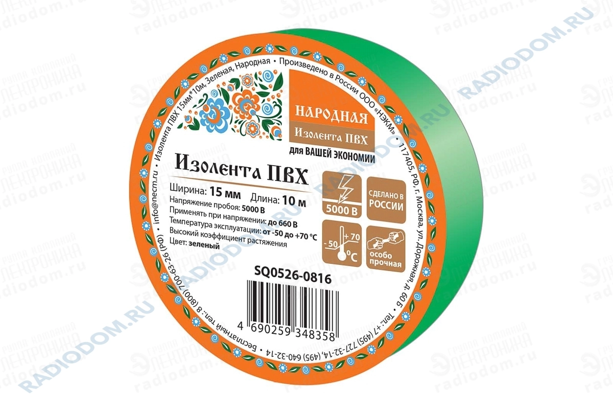 Изолента ПВХ 0,13ммх15ммх10м зеленая TDM ELECTRIC