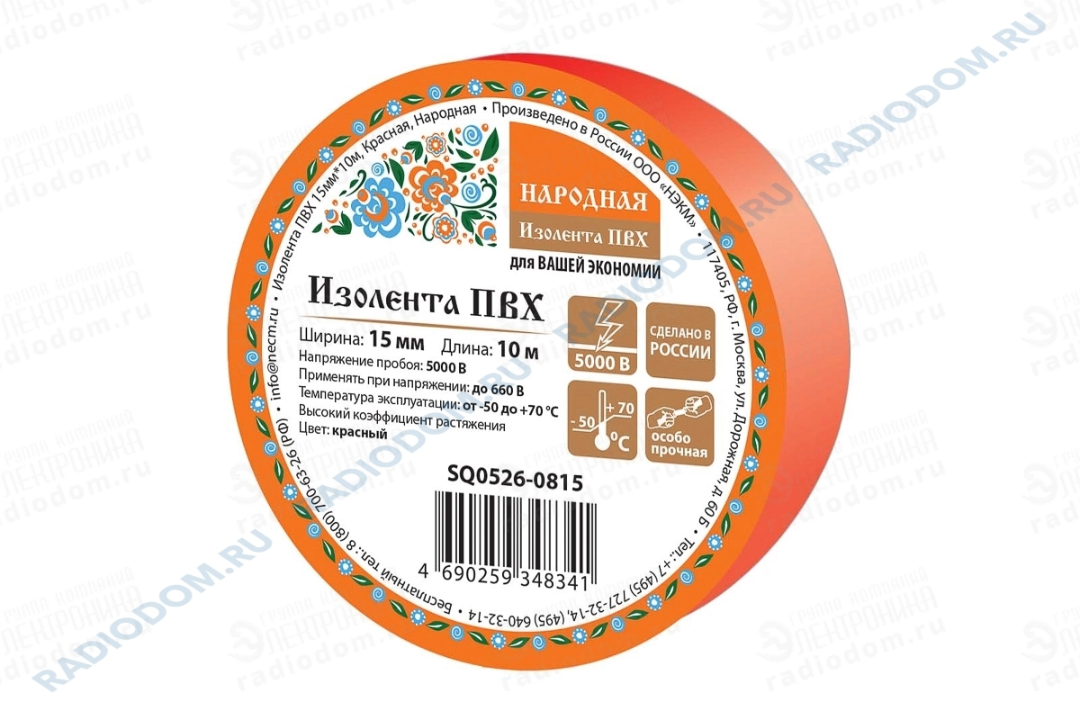 Изолента ПВХ 0,13ммх15ммх10м красная TDM ELECTRIC