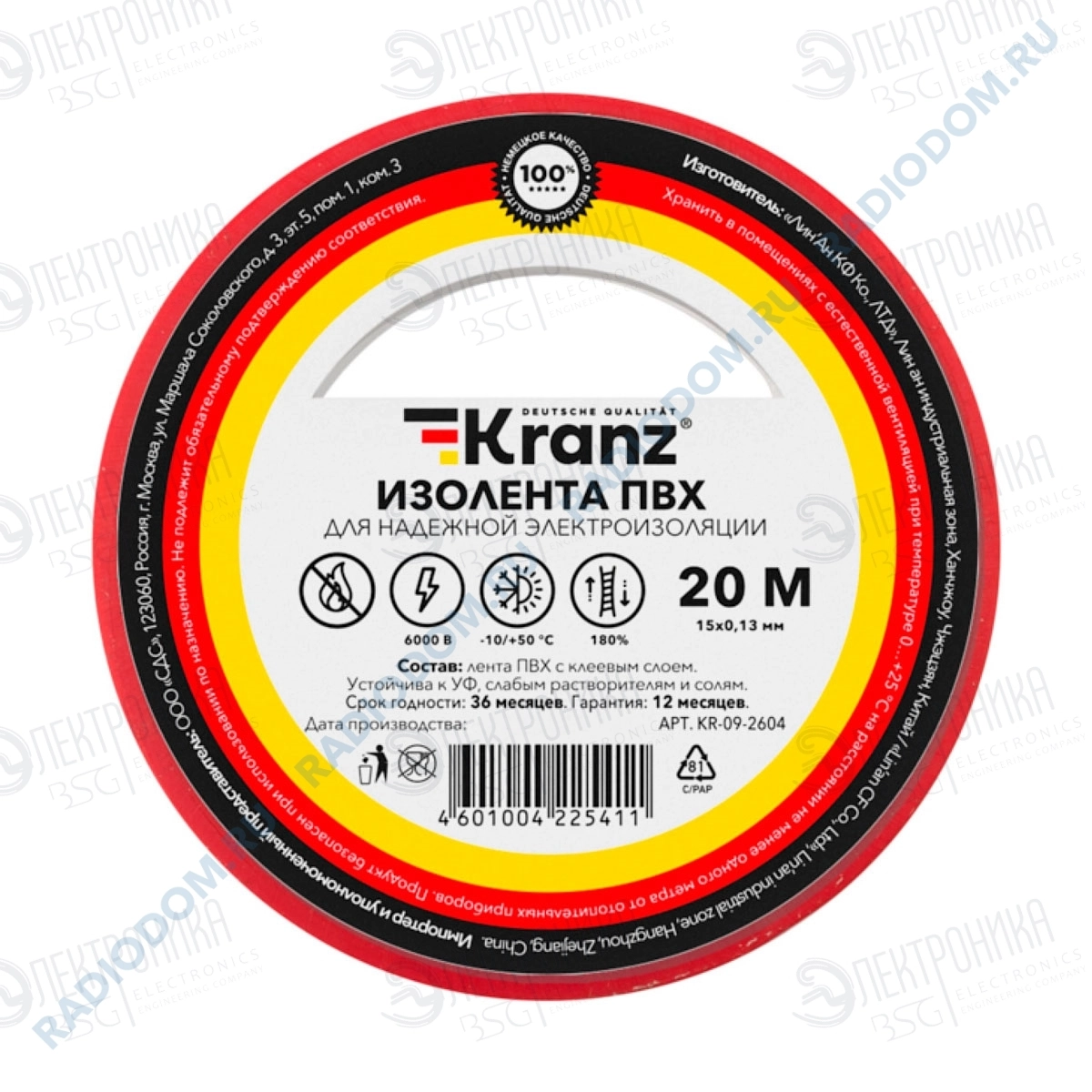Изолента ПВХ 0,13ммх15ммх20м красная Rexant