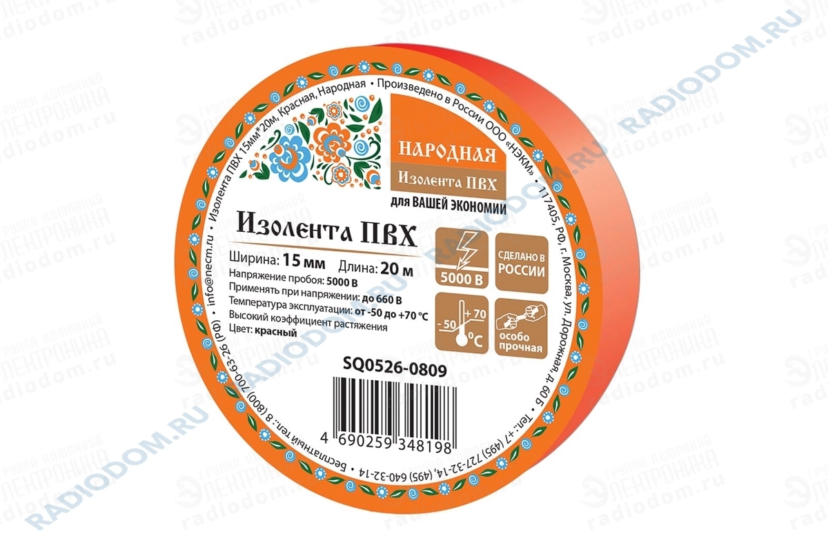 Изолента ПВХ 0,13ммх15ммх20м красная TDM ELECTRIC