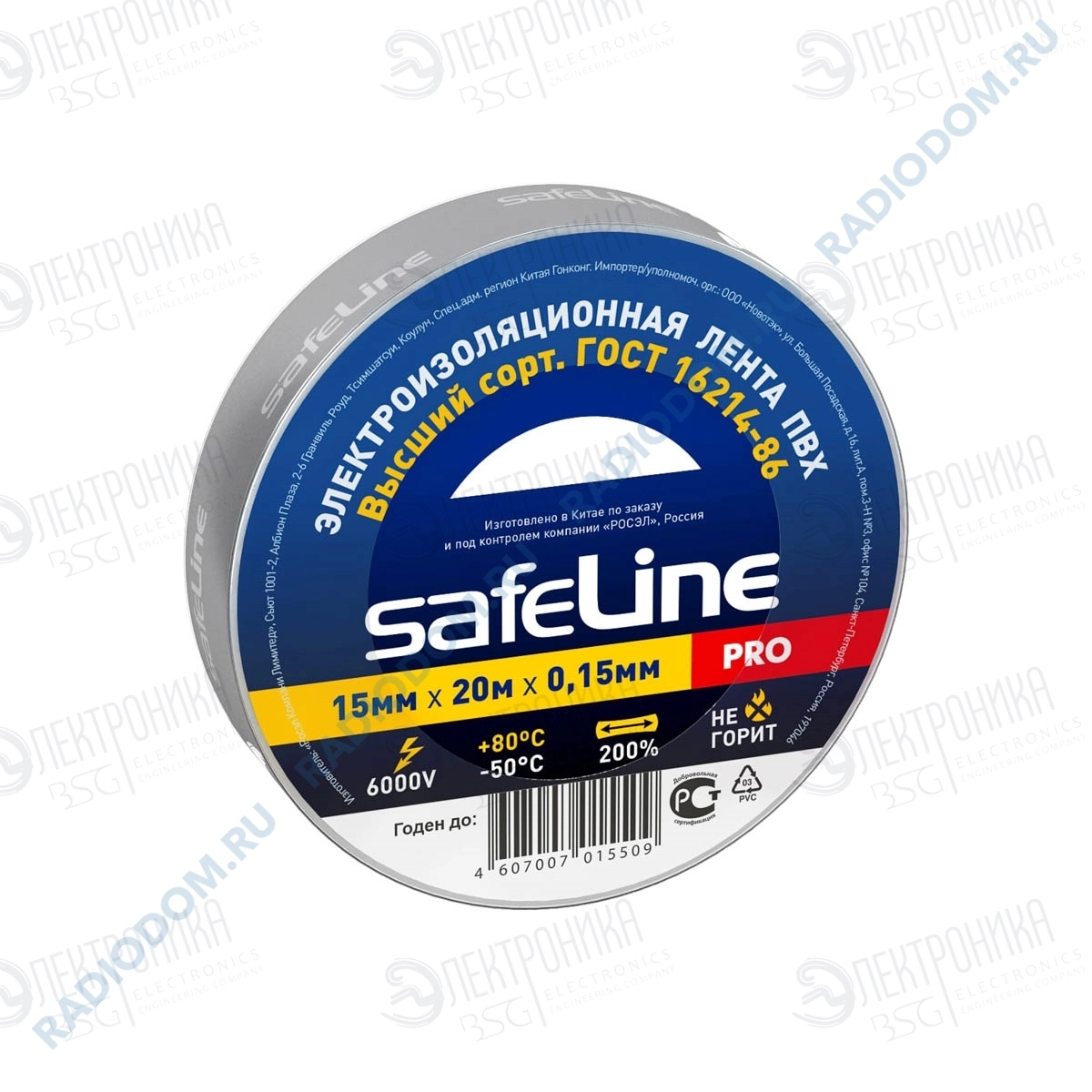 Изолента ПВХ 0,15ммх15ммх20м серая Multech 911 PRO SafeLine