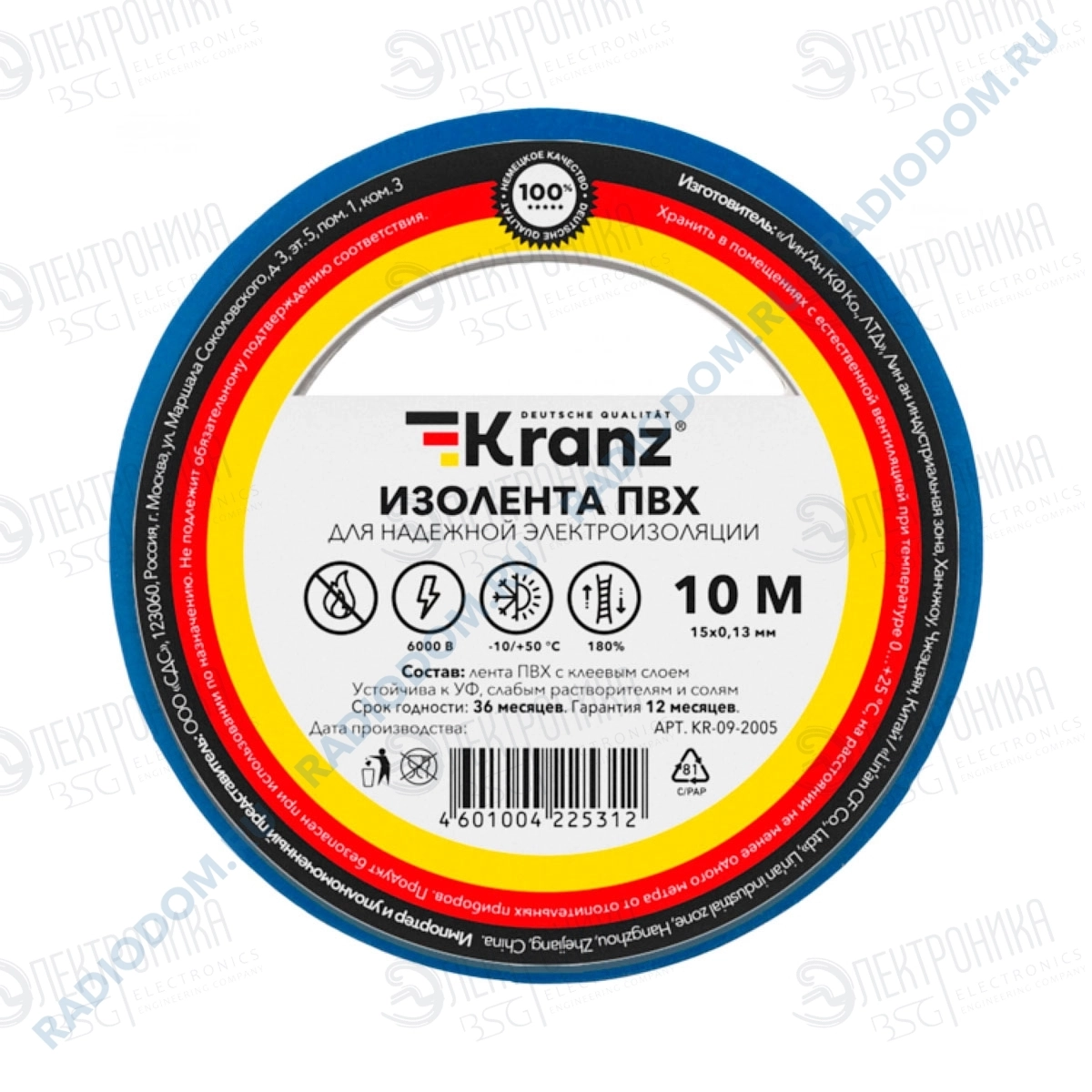 Изолента ПВХ 0,13ммх15ммх10м синяя Rexant