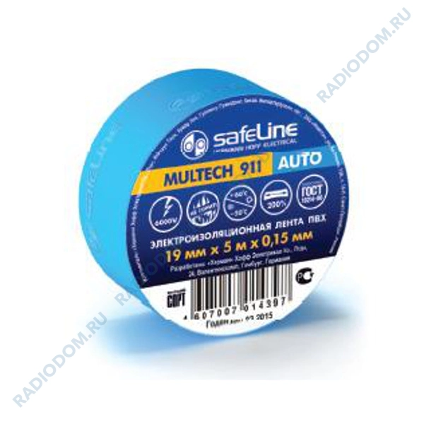 Изолента ПВХ 0,15ммх19ммх 5м синяя Multech 911 AUTO SafeLine