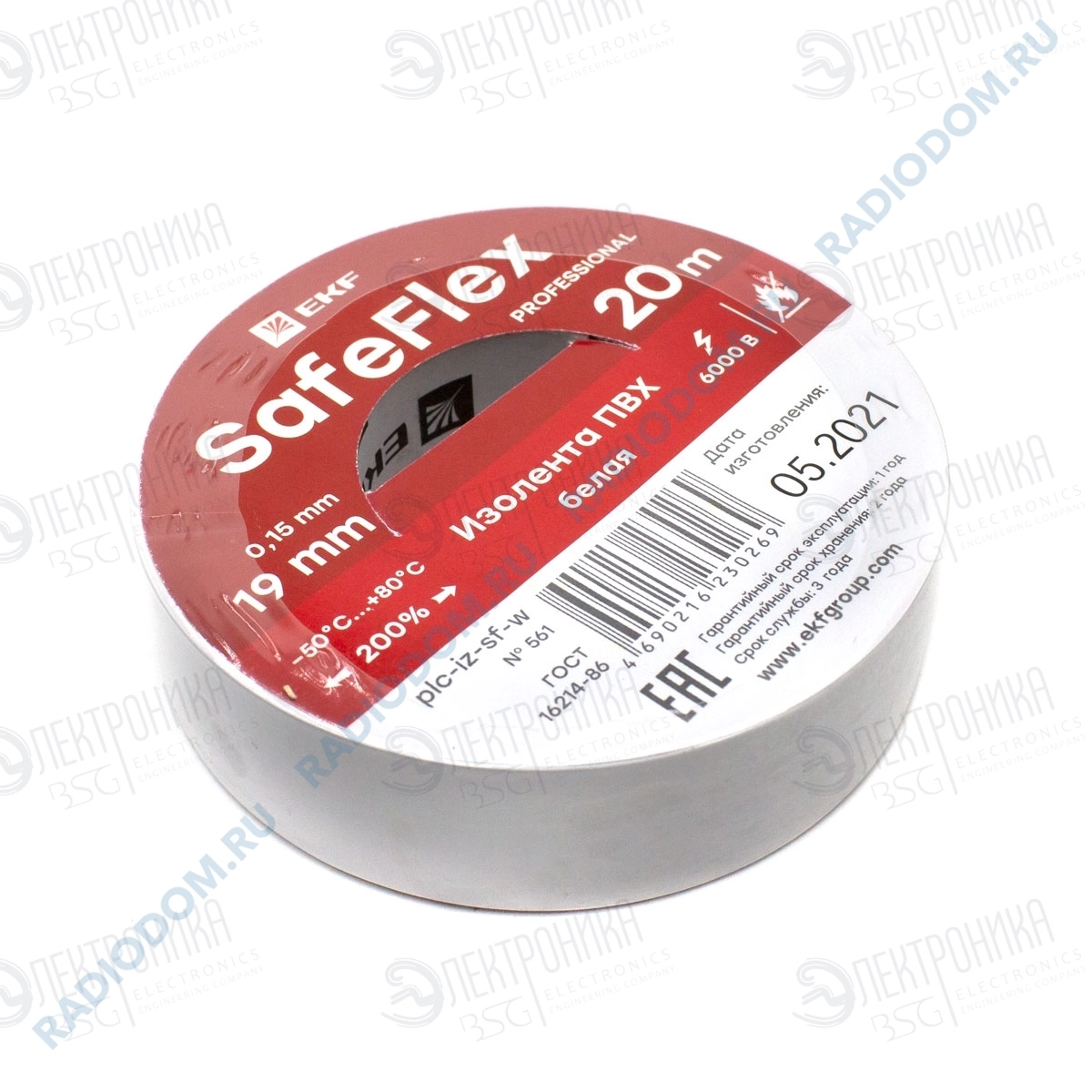 Изолента белая 0,15ммx19ммx20м SafeFlex EKF
