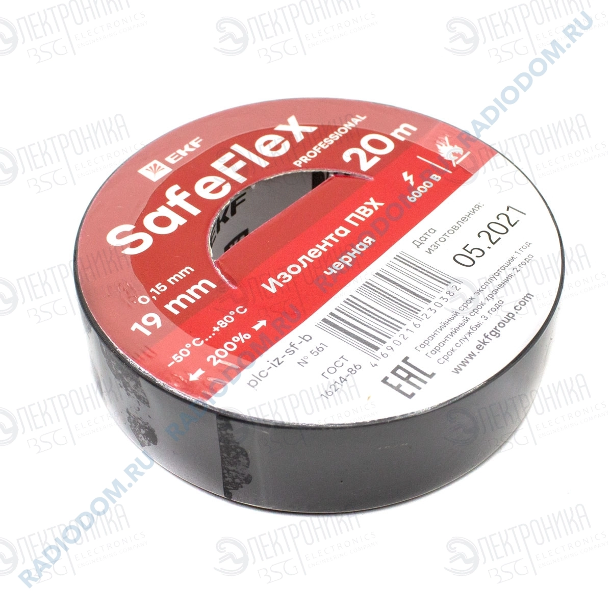 Изолента черная 0,15ммx19ммx20м SafeFlex EKF