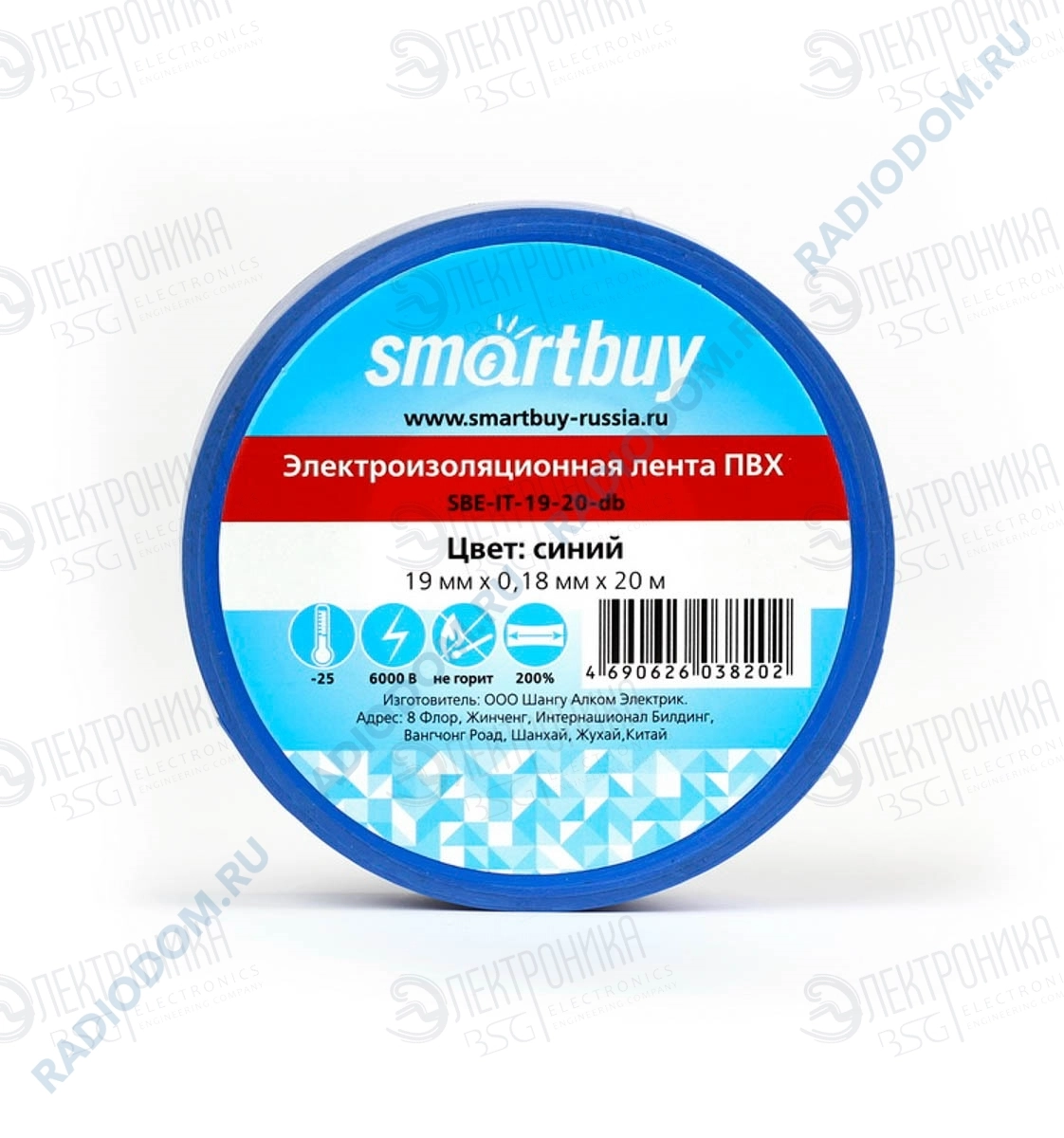Изоляционная лента Smartbuy изготовлена на основе пленки из поливинилхлоридного изоляционного пластиката. Специальные добавки, используемые при производстве данного материала, повышают эластичные свойства ленты, увеличивают ее долговечность и обеспечивают устойчивость к горению. Изолента Smartbuy предназначена для проведения всех видов электромонтажных работ: изоляции электрических проводников сращивания и жгутирования защиты от механических повреждений цветовой маркировки Каждый рулон упакован в термоусадочную пленку с индивидуальной этикеткой.