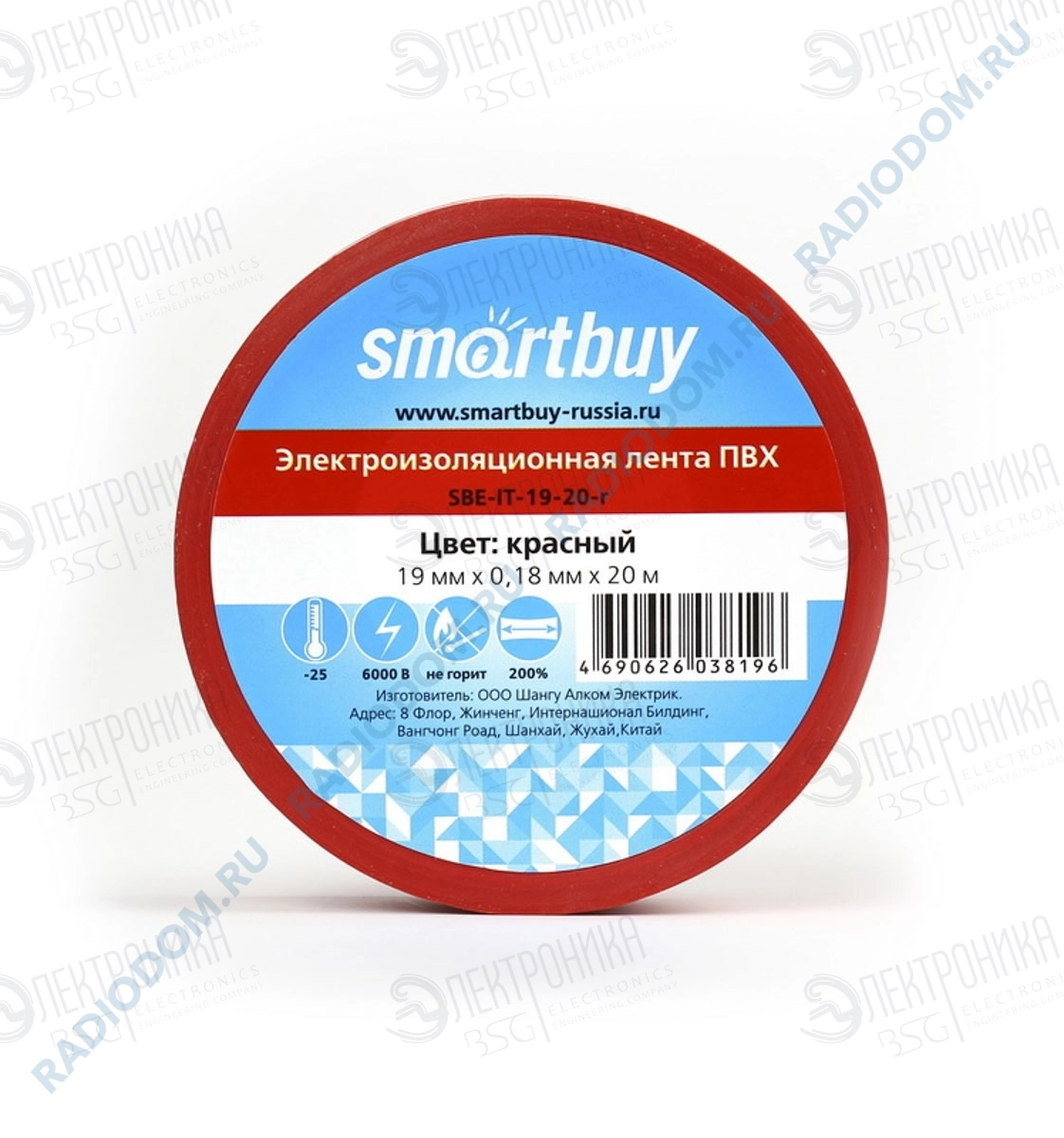 Изоляционная лента Smartbuy изготовлена на основе пленки из поливинилхлоридного изоляционного пластиката. Специальные добавки, используемые при производстве данного материала, повышают эластичные свойства ленты, увеличивают ее долговечность и обеспечивают устойчивость к горению. Изолента Smartbuy предназначена для проведения всех видов электромонтажных работ: изоляции электрических проводников сращивания и жгутирования защиты от механических повреждений цветовой маркировки Каждый рулон упакован в термоусадочную пленку с индивидуальной этикеткой.
