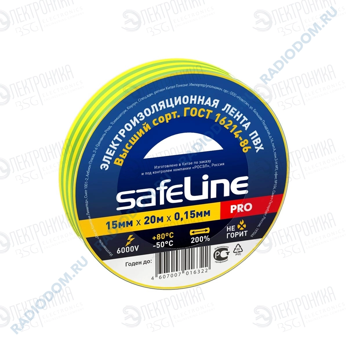 Изолента желто-зеленая 0,15ммх15ммх20м Multech 911 PRO SafeLine