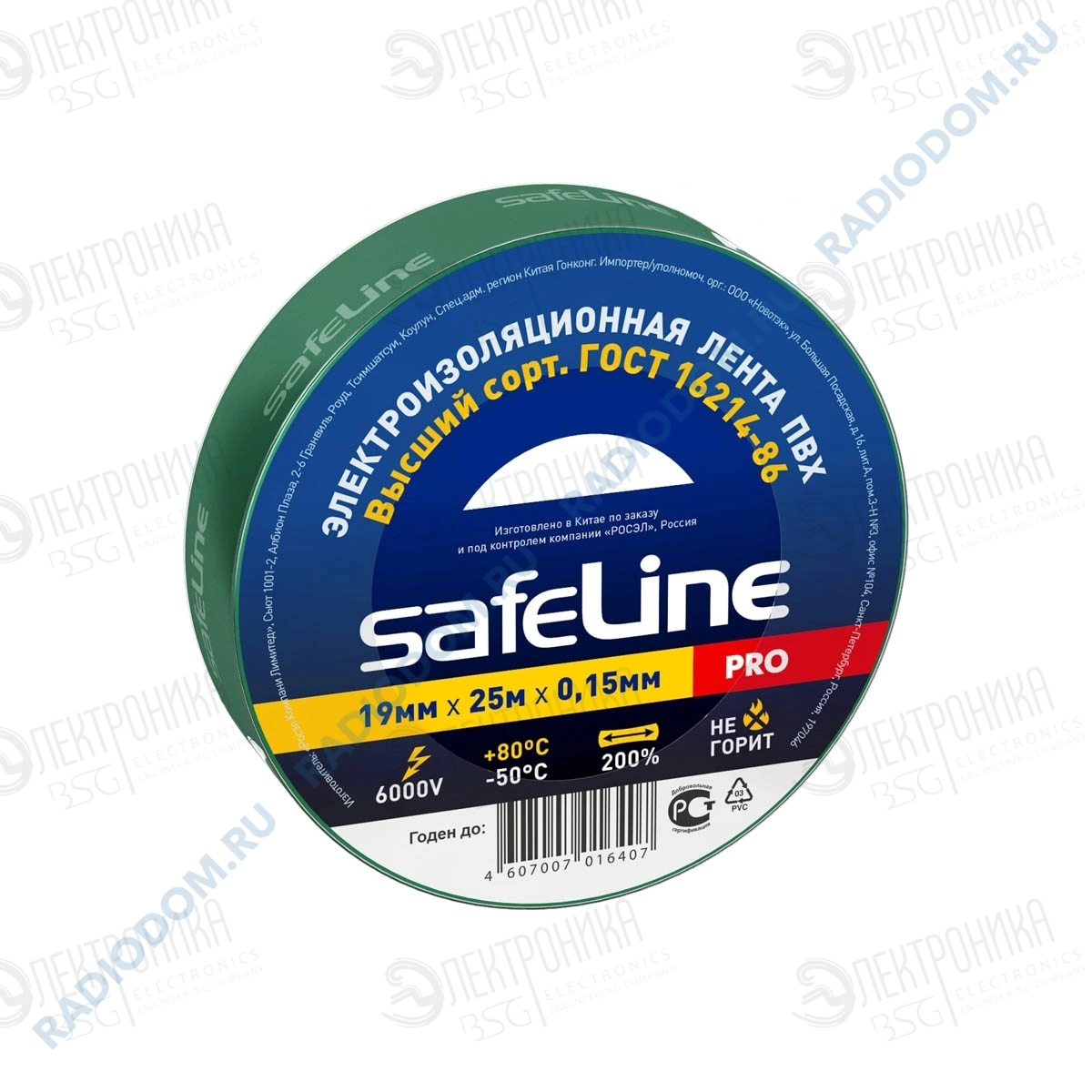 Изолента ПВХ 0,15ммх19ммх25м зеленая Multech 911 PRO SafeLine