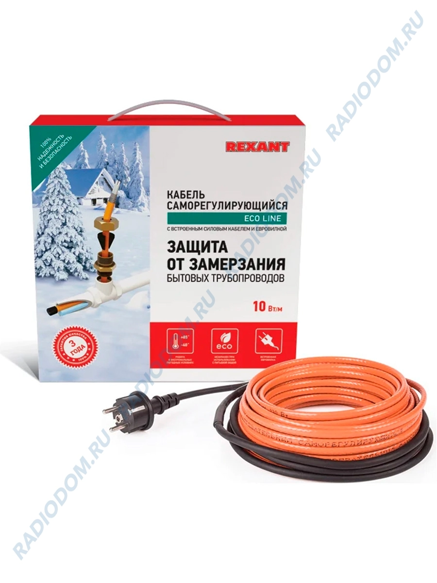 Обогревательный кабель для труб 10HTM-CT длина 10м 51-0605 Rexant