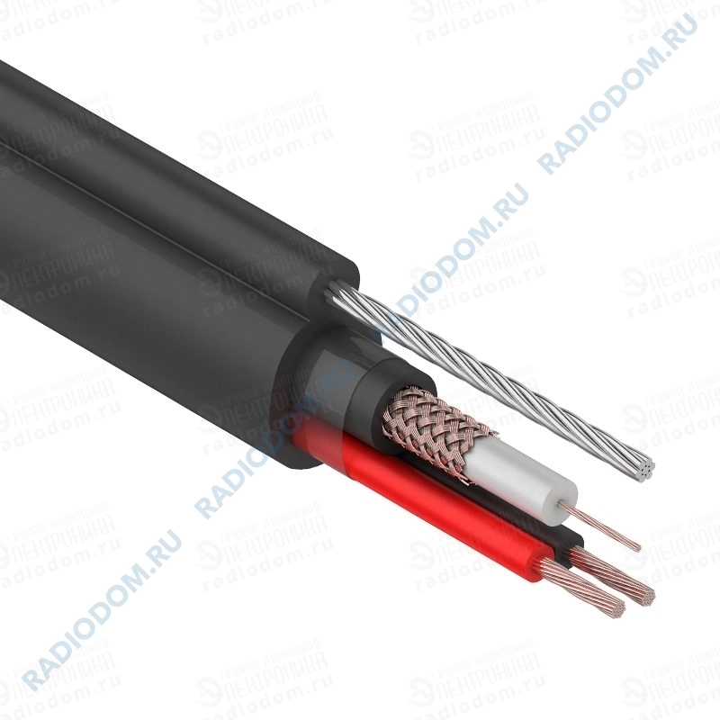 Кабель видеонаблюдения КВК-П + 2x0,75мм с тросом черный OUTDOOR 01-4107 Rexant