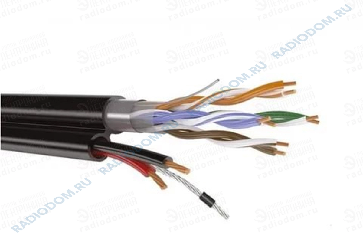 Кабель FTP 4x2x0,5 cat5e OUTDOOR + 2x0,75mm с тросом черный ELETEC