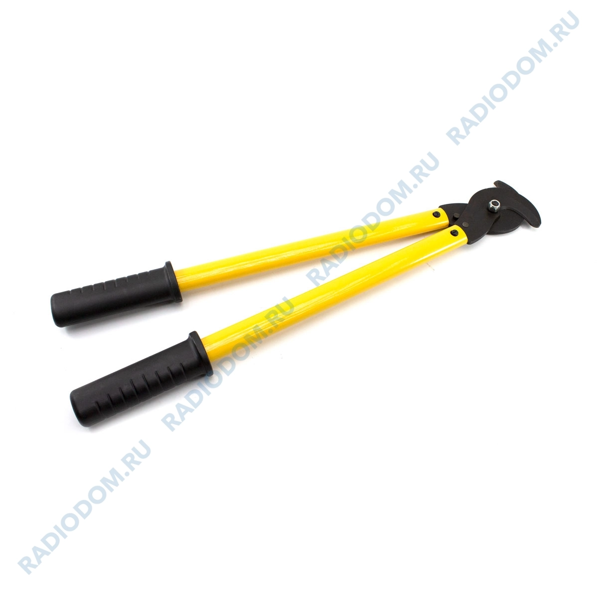 Кабелерез (RN-300G) REXANT обладает высокой режущей способностью и применяется для резки медных и алюминиевых, одно- и многожильных кабелей максимальным диаметром 36 мм и сечением до 300 мм². Благодаря увеличенной длине рукояток инструмент имеет увеличенную передачу прилагаемого усилия. Рукоятки изготовлены из стальных труб, благодаря чему конструкция имеет уменьшенный вес, на концах расположены изоляционные накладки, которые обеспечивают надежный непроскальзывающий хват инструмента. Закаленные режущие кромки ножей обеспечивают гладкое и чистое резание кабеля.