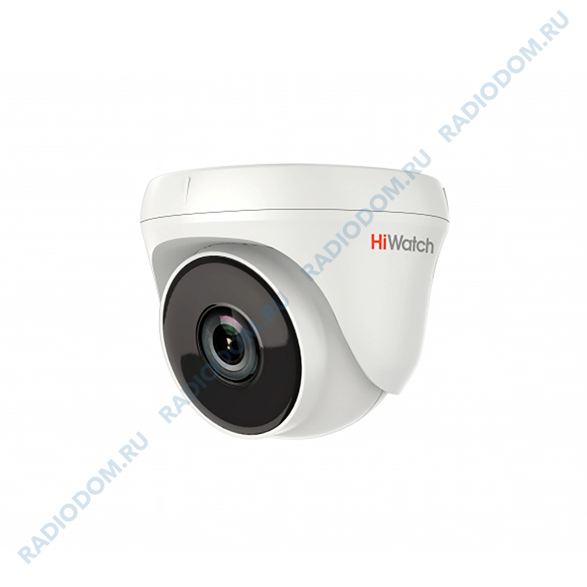 Модель видеокамеры HiWatch DS-T233 представлена в прочном белом корпусе типа «Шар в стакане». Разрешение камеры - 1920х1080, а угол обзора: горизонтальный 103˚.