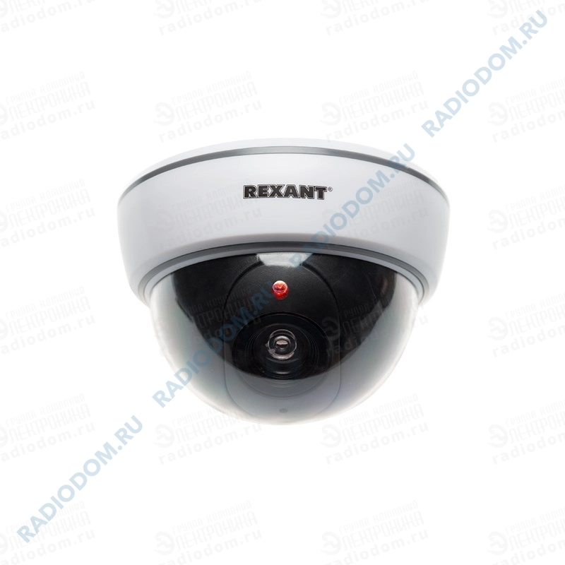 Муляж внутренней купольной камеры видеонаблюдения белого цвета с мигающим красным светодиодом неотличим от обычной камеры.