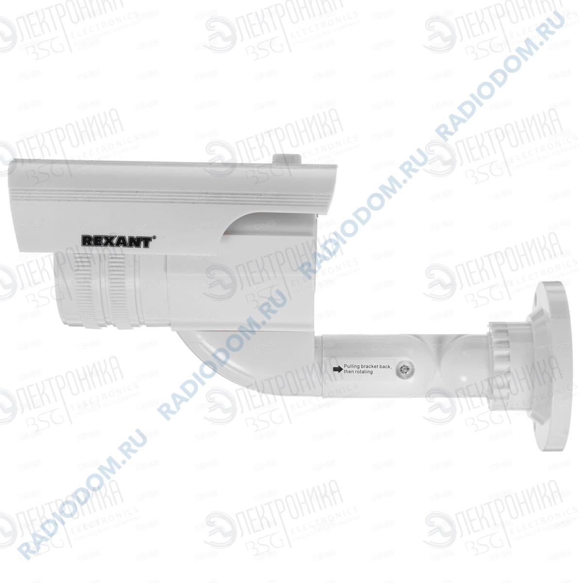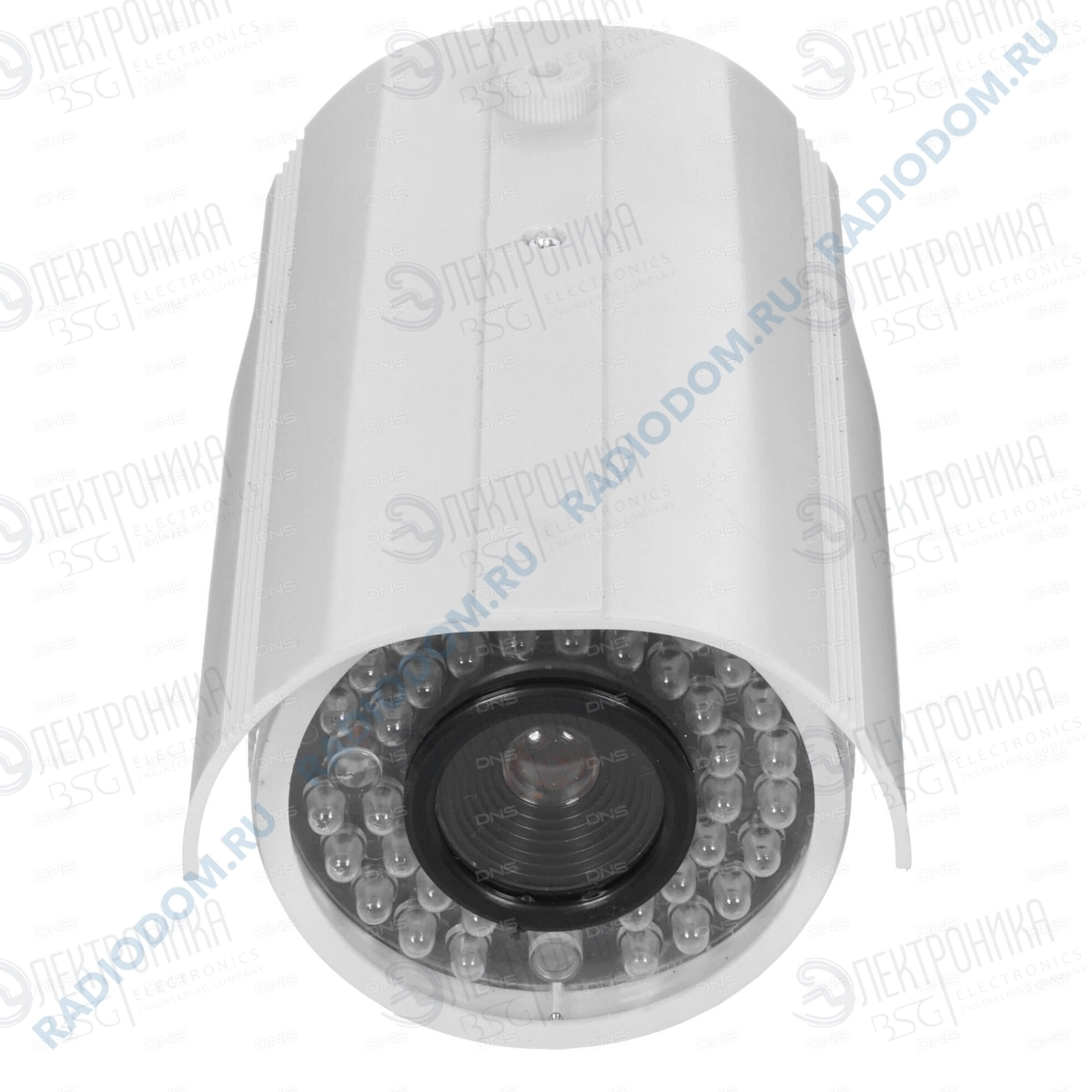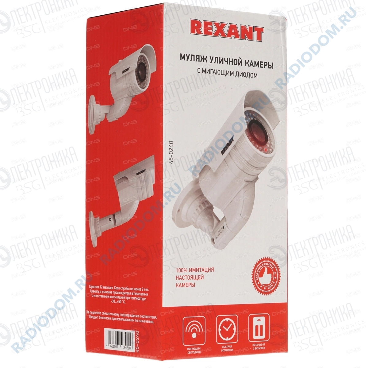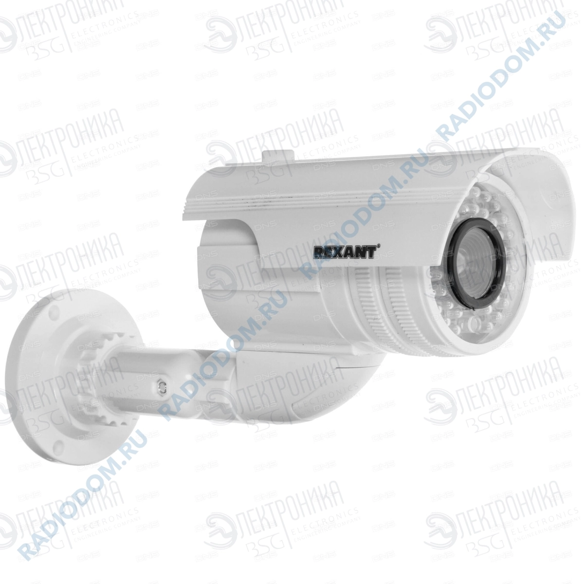 Муляж уличной цилиндрической камеры видеонаблюдения белого цвета с мигающим красным светодиодом неотличим от обычной камеры.