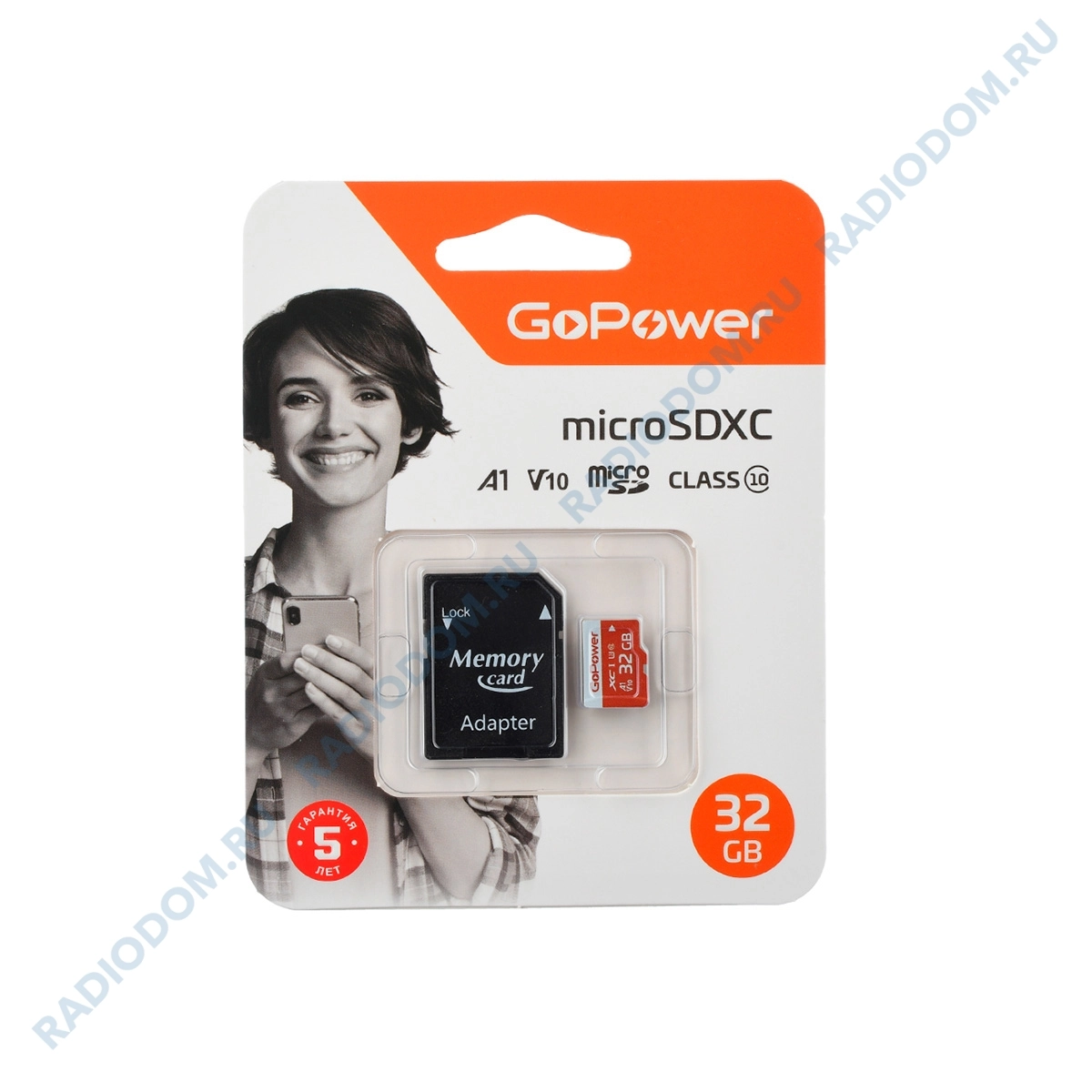 Карта памяти MicroSDHC 8Gb Class 10 15 МБ/сек V10 +адаптер GoPower