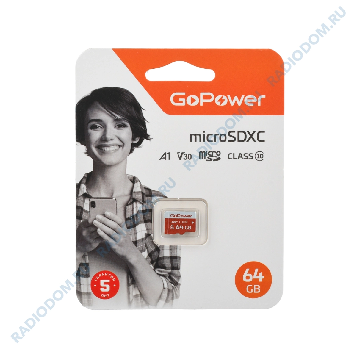 Карта памяти Micro-SDXC 64Gb Class 10 90 МБ/сек V30 без адаптера GoPower 00-00025678