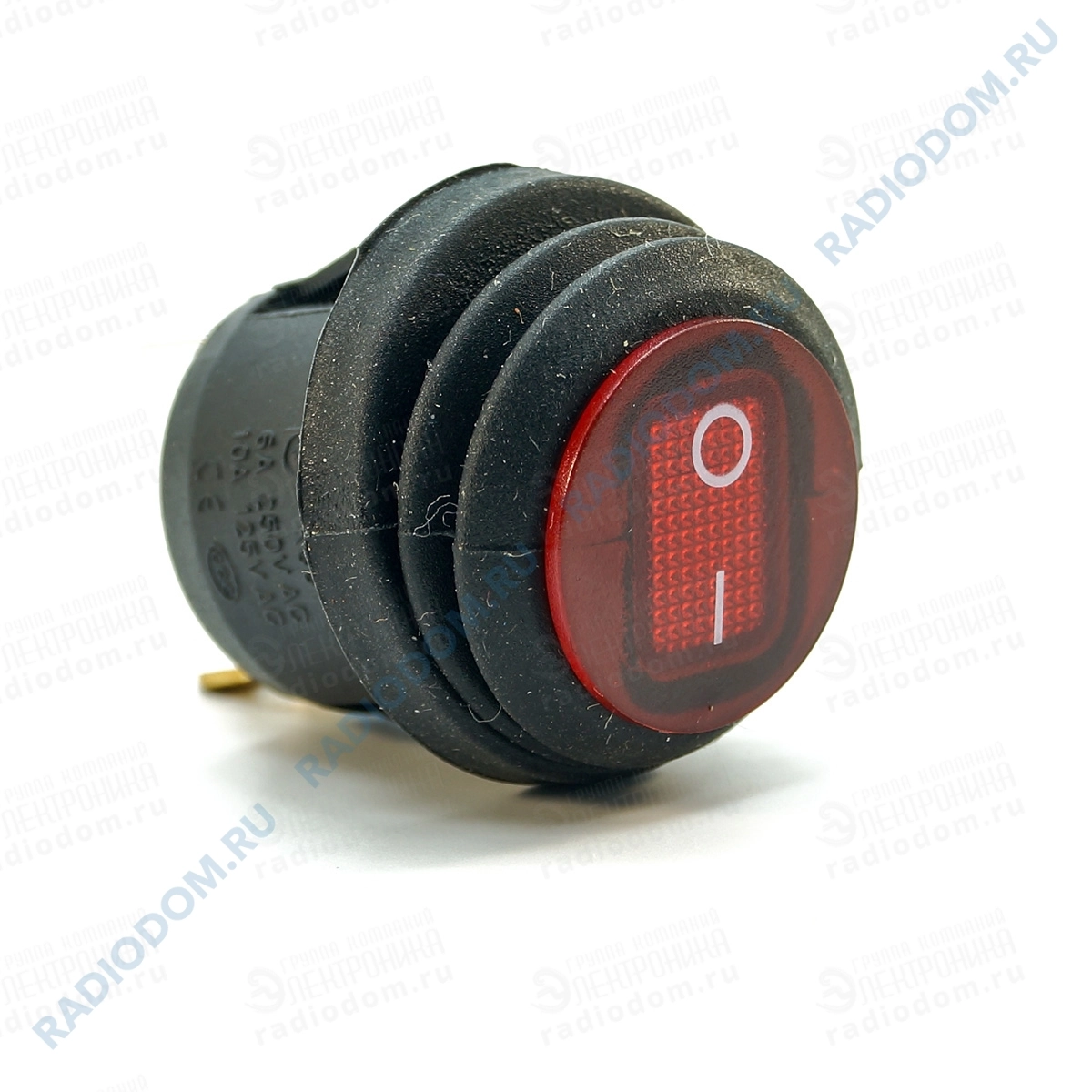 Кнопка без фиксации круглая 12В подсветка красная 3 контакта R13-553 пыле-влагозащищенная