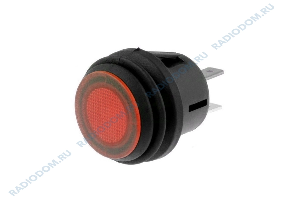 Кнопка с фиксацией круглая 12В подсветка красная 3 контакта R13-553 пыле-влагозащищенная
