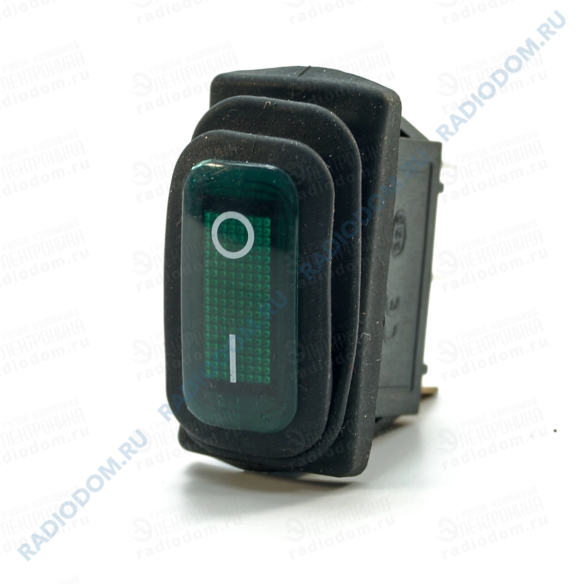 Выключатель 14x30мм 250В 16A подсветка зеленая KCD1 3 контакта I ∕ O пыле-влагозащищенный
