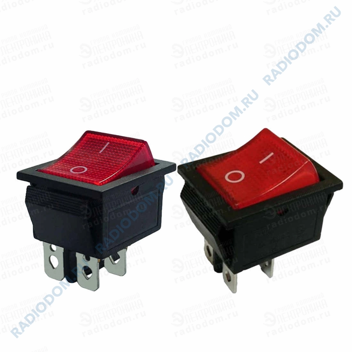 Выключатель 15x21мм KCD6-21 250В 6A подсветка красная 4 контакта пыле-влагозащищенный