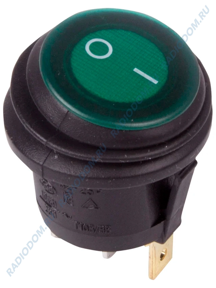 Выключатель круглый RWB-225 250В 6A подсветка зелёная ON-OFF герметичная 36-2597 Rexant