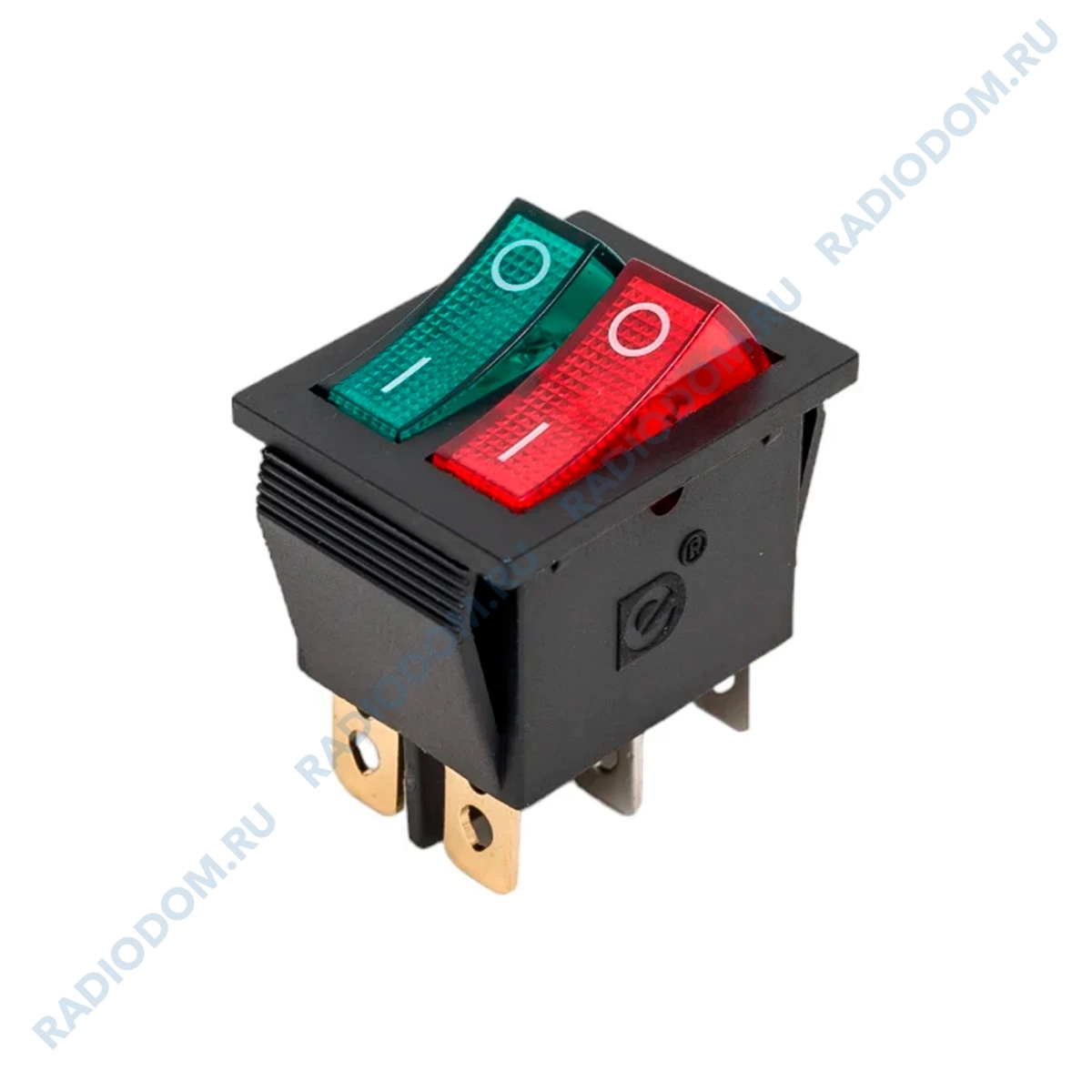 Выключатель 25x32мм RWB-511 IRS-2101-1C 250В 15A 2 клавиши подсветка красная-зеленая 6 контактов 36-2450 I ∕ O SC797 (SC767) KCD4-202/N