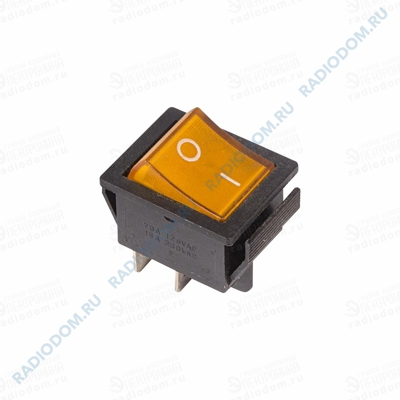Выключатель 25,5x30,8мм IRS-201-1 250В 16A подсветка желтая 4 контакта I ∕ O B767
