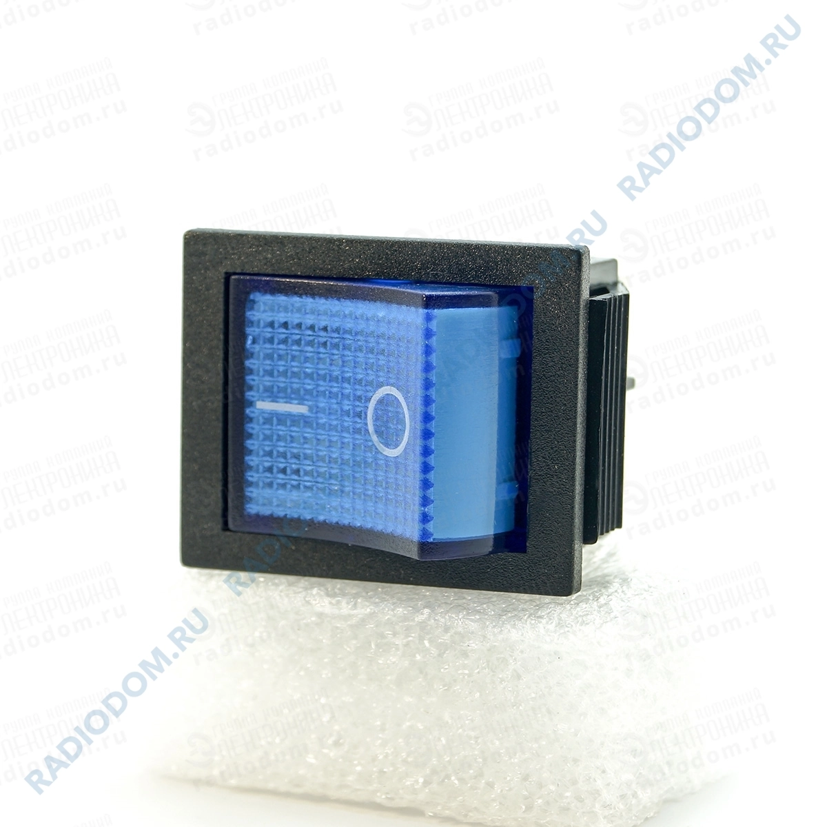 Выключатель 25,5x31,0мм IRS-202-1 250В 15A подсветка синяя 6 контактов I ∕ O Вк-767 (B-506)