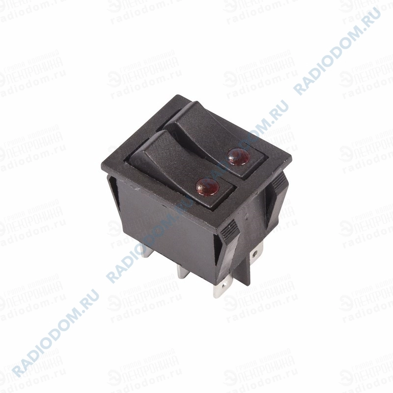 Выключатель 25,6x30,6мм IRS-2101E1-1C 250В 15A 2 клавиши подсветка красная точка 6 контактов
