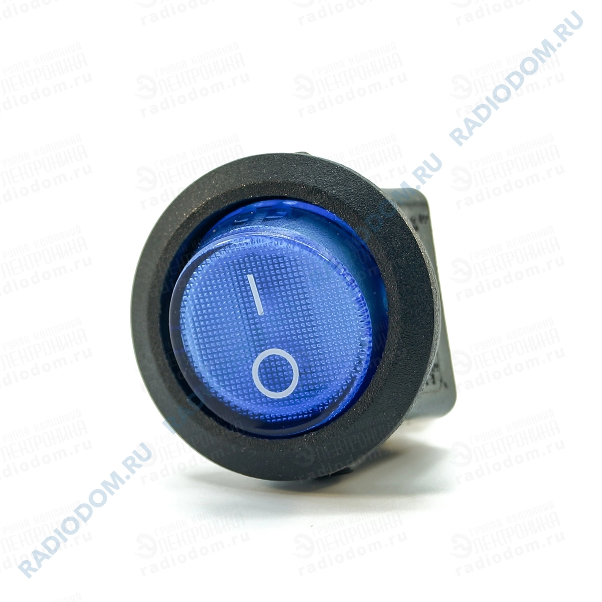 Выключатель IRS-101-8 круглый 250В 6,5A подсветка синяя 3 контакта GU0303