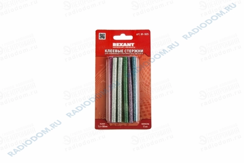 Клей термоклей Ø7,4мм комплект разные цвета с блестками 12 шт 09-1025 Rexant