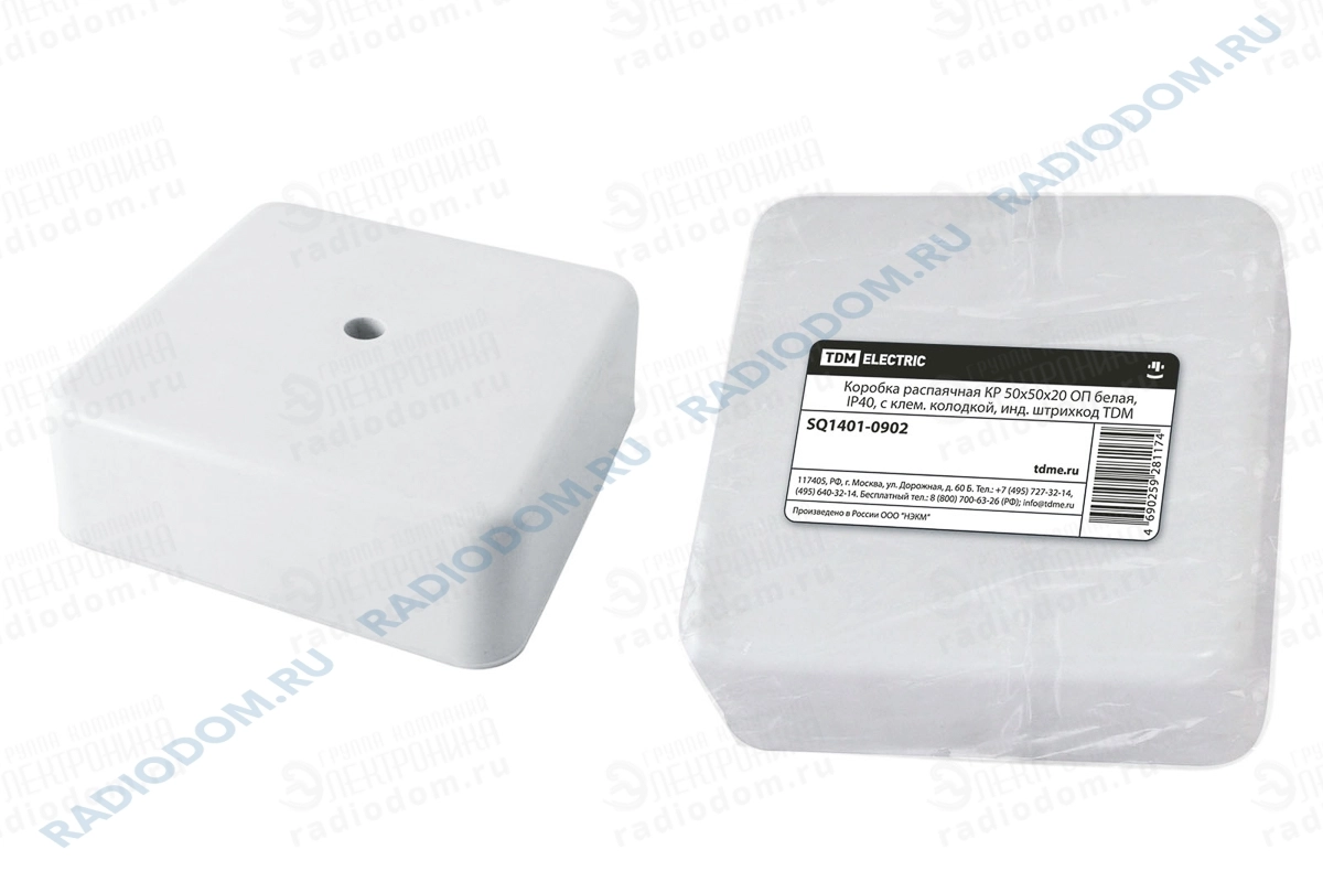 Коробка распаячная 50х50х20мм наруж установки 6 клеммIP40 ОП белая с клем. колодкой -/89877/ TDM ELECTRIC