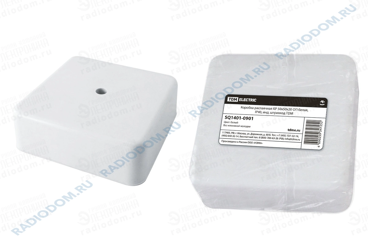 Коробка распаячная 50х50х20мм для наруж установки IP40 ОП белая без клемм колодки TDM ELECTRIC