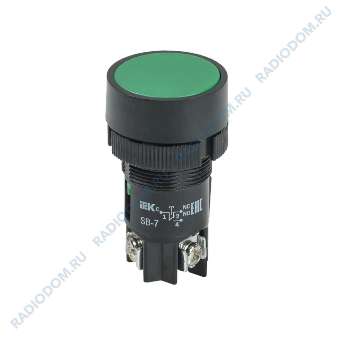 Кнопка без фиксации круглая 2группы замыкание ∕ размыкание 230V 10A зеленая без подсветки "Пуск" SB-7 iEK BBT40-SB7-K06