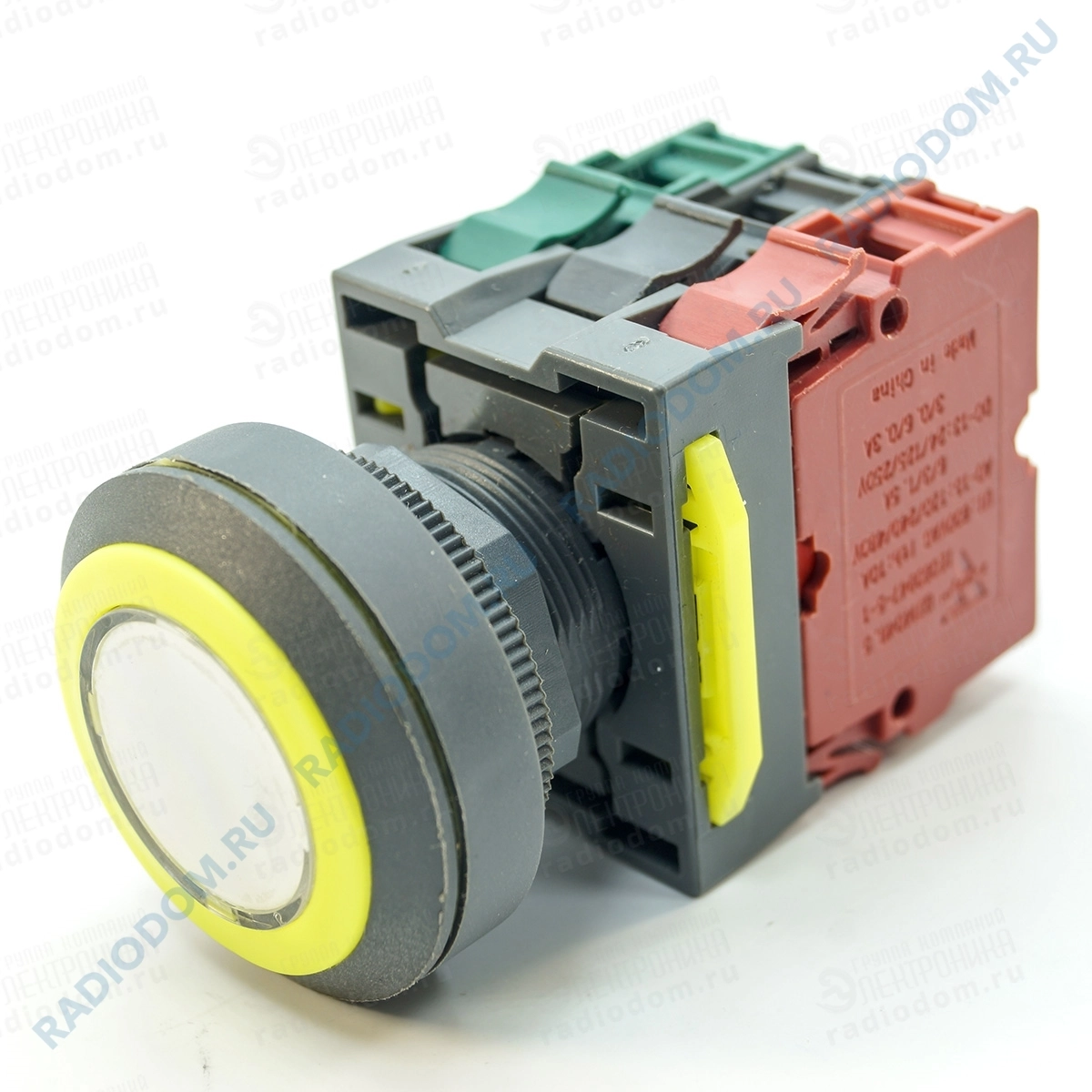 Кнопка с фиксацией круглая 2группы замыкание ∕ размыкание 250В 3A подсветка белая 220В JHK22 ∕ 25-11S10
