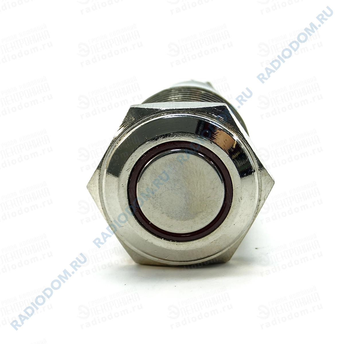 Кнопка без фиксации 12В металл подсветка по кругу красная D-16мм 5 контактов