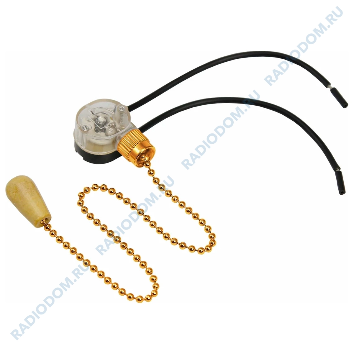 Выключатель торшерный 3A 250В цепочка, цвет золото, с деревянным наконечником 32-0104 Rexant