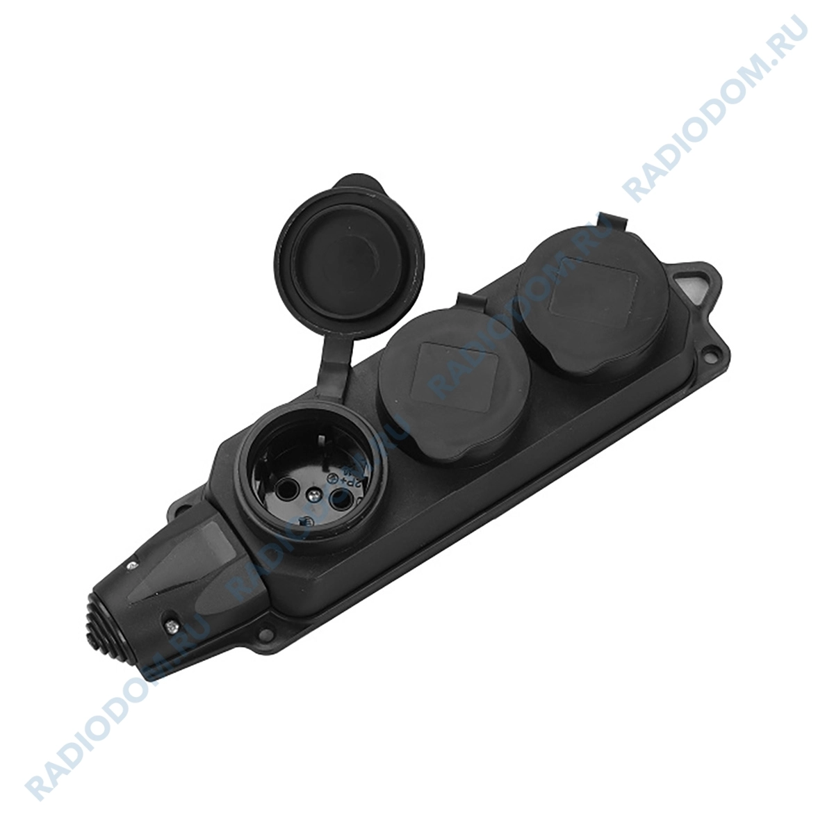 Колодка удлинителя 3 розетки с заземлением 16А черная General