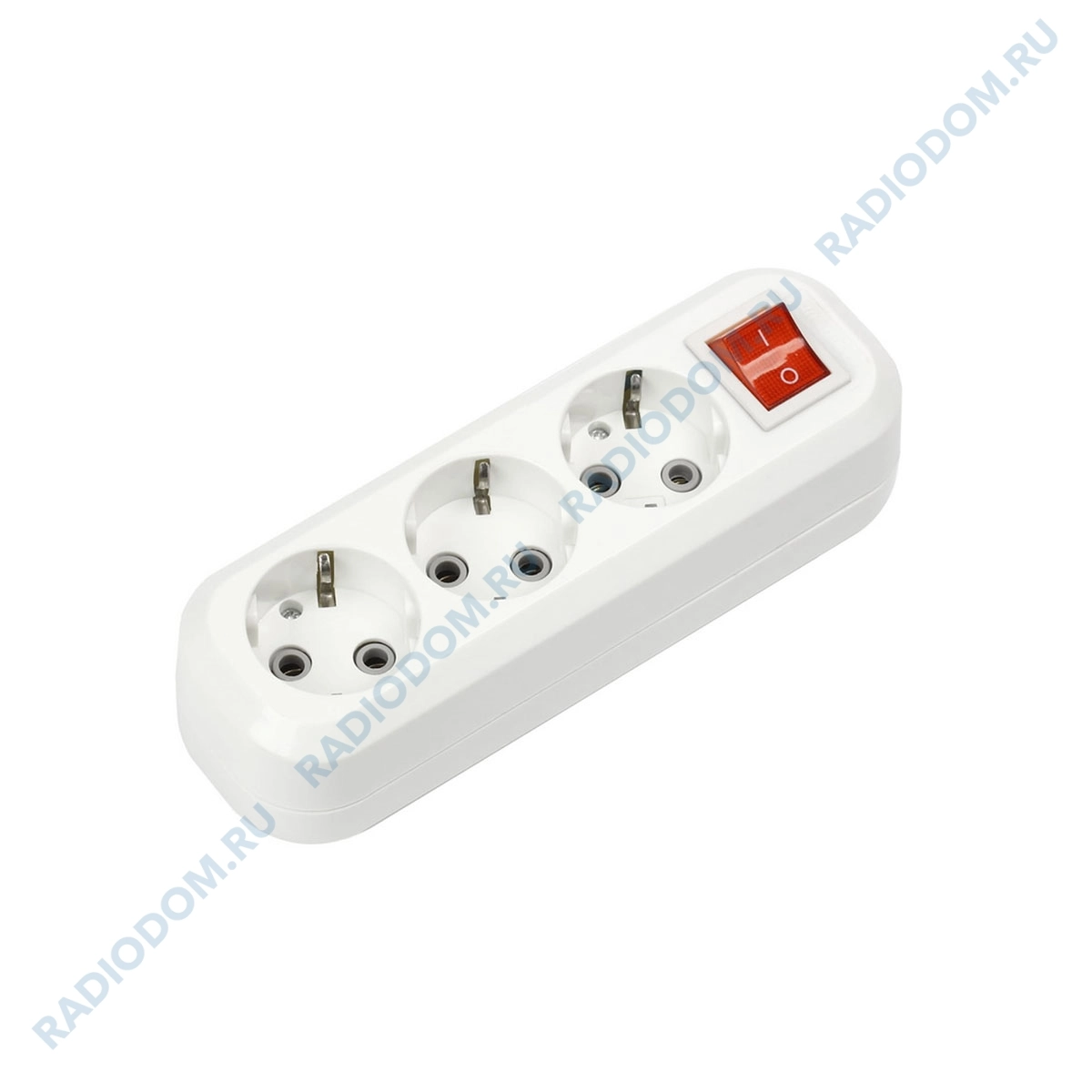 Колодка удлинителя 3 розетки белая с кнопкой выключения Smartbuy