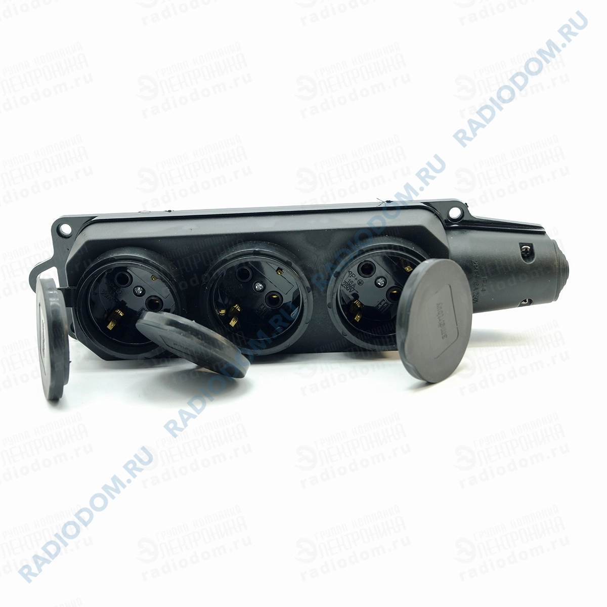 Колодка удлинителя 3 розетки с заземлением с крышкой 16А черная smartbuy