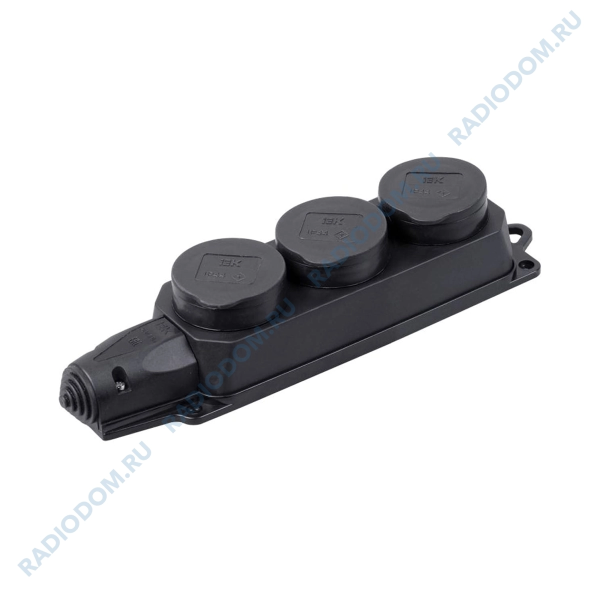 Колодка удлинителя 3 розетки с заземлением 16А черная ОМЕГА iEK