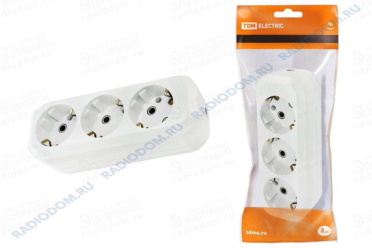 Колодка удлинителя 3 розетки с заземлением 16А белая TDM ELECTRIC