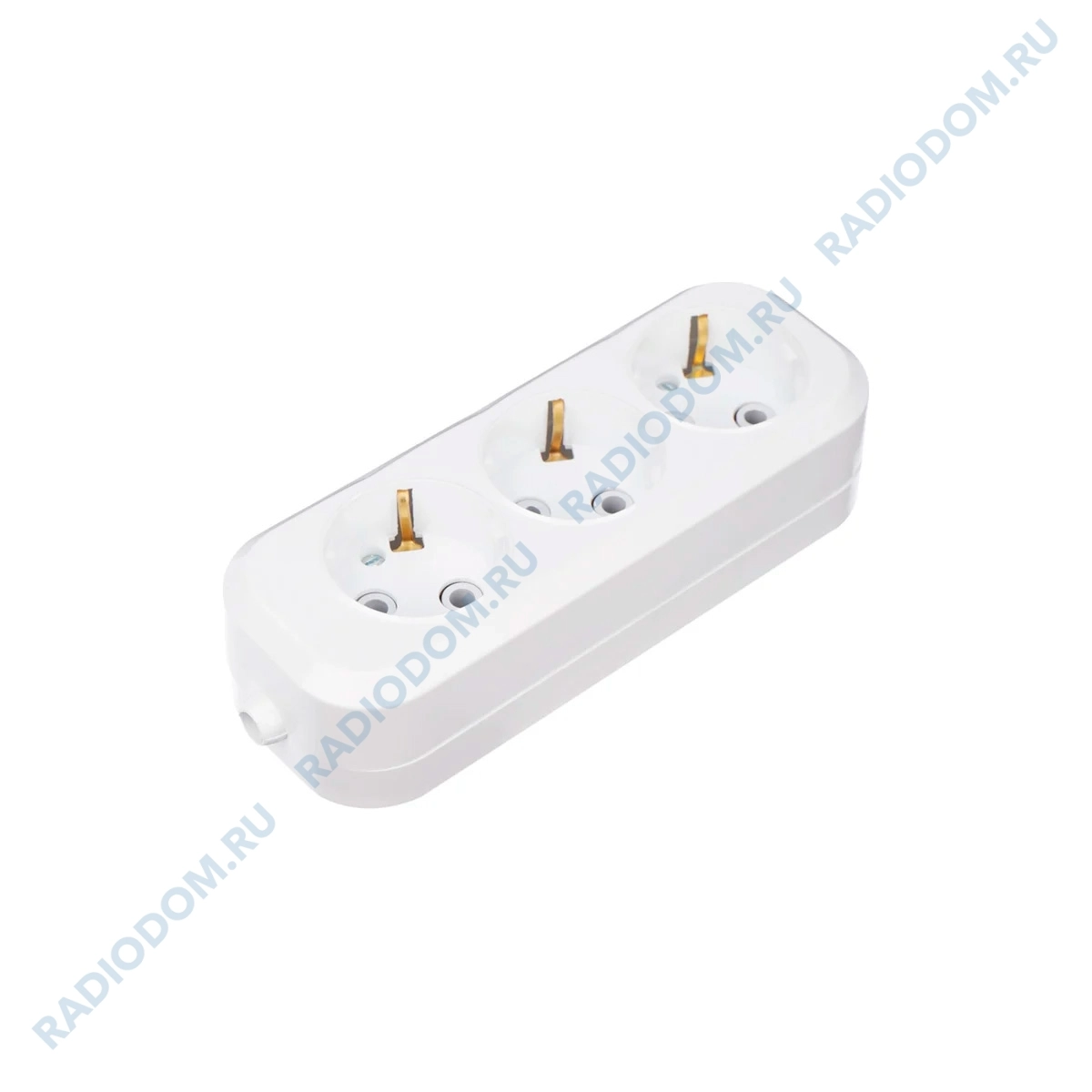Колодка удлинителя 3 розетки с заземлением 10А белая Rexant