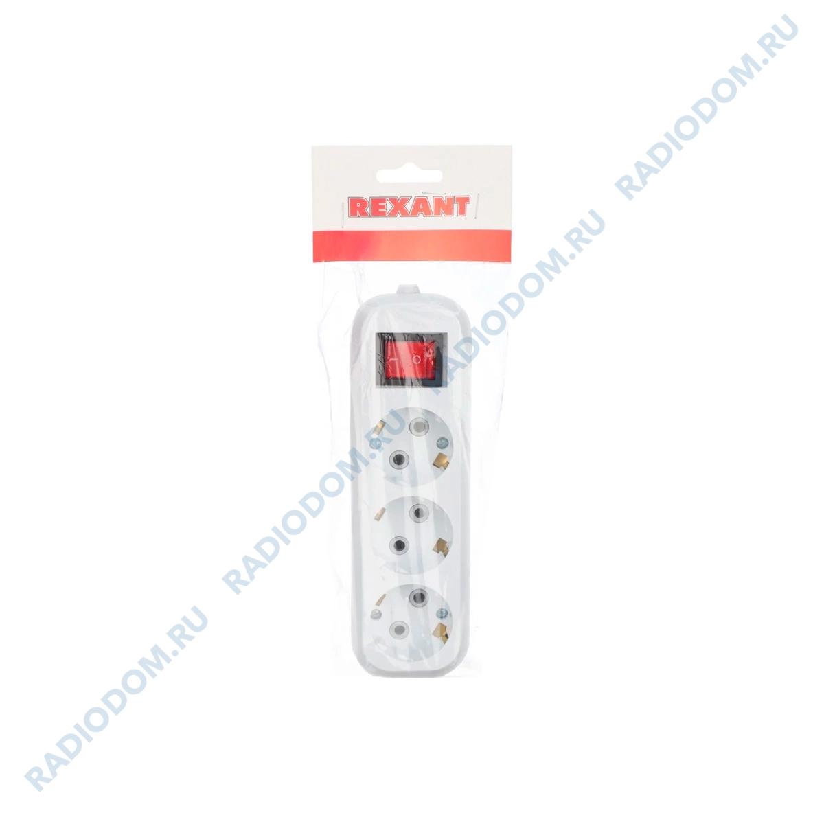Колодка удлинителя 3 розетки с заземлением с выключателем 10А белая Rexant